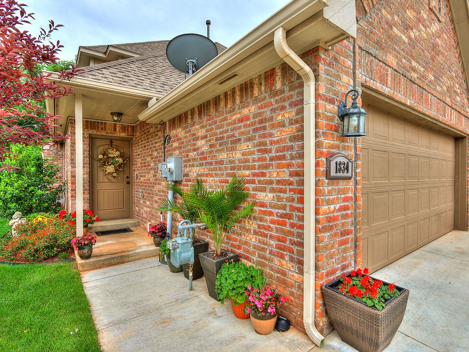 3 bedrooms, 2.5 baths with custom finishings. Private backyard and 2 car garage. Alarm system, sprinkler system, stainless steel appliances, granite counter tops, laundry room with washer and dryer hookups only. Large windows with a fireplace in living room. Master bath has double vanities, with both a separate tub and walk in shower. Master down with 2 bedrooms upstairs and full bath. Walk in attic access upstairs. Backyard features lush trees with private quiet patio. Edmond schools and OKC utilities. Ideal location, minutes to get anywhere in the metro area. No exceptions to the NO Pet or Smoking policies! Owner provides lawn maintenance. Tenant pays for Utilities.