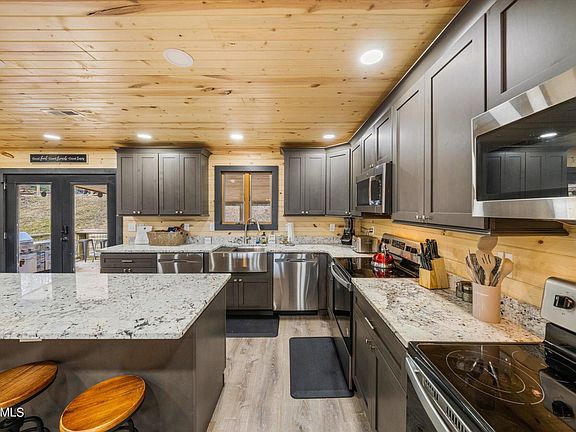 MONEY MAKER!!! RECENTLY REMODELED, INVESTMENT CABIN! This gorgeous 3 bedroom plus 5 bonus rooms, 8 bath cabin has been beautifully remodeled inside and out. Spread across 2 levels and 4,000 sq.ft., the cabin is loaded with custom, luxury finishes. The main level boasts an open floor plan and includes gorgeous wood planked walls and ceilings with modern black accents, a gas fireplace with custom mantle, french doors leading onto the oversized deck and a multitude of windows to allow plenty of natural lighting. The kitchen is a chef's dream, complete granite countertops, a large island, 2 separate bar seating areas and gleaming stainless appliances, including two refrigerators, two stoves and two microwaves. The oversized dining area has plenty of space accommodate two large dining tables. The main level is also home to four spacious rooms, each with a full en-suite bathroom and custom tiled walk-in showers. The lower level features a large game room, outfitted with two racing arcade games, a MultiCade arcade and a pool table. A twelve person theater room, complete with surround sound and reclining massage chairs, can also be found on this level. The lower level is home to the remaining four rooms, each with a custom tiled walk-in showers. Three of these rooms feature beautiful, custom built-in bunk beds. The outdoor living spaces are as lux as the inside. Just off the kitchen, you'll find a covered deck, outfitted with a bubbling hot tub and large built-in grill. This deck leads way to an amazing, oversized fire pit area, surrounding by several double swings. The cabin's second deck is the perfect spot for taking in the mountain views. Located on .71 private acres, just minutes from downtown Pigeon Forge, this luxury cabin is the perfect investment opportunity!