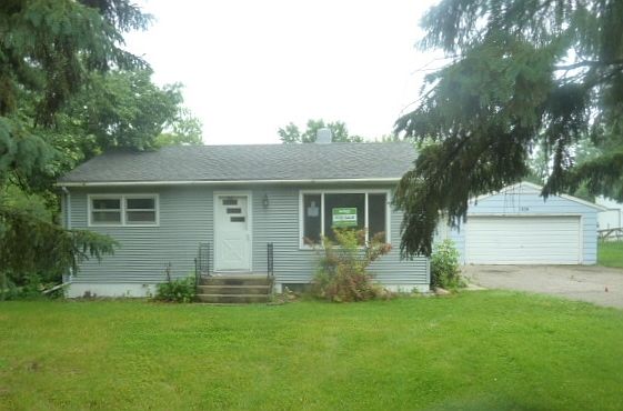 2 Bedroom rambler on approx. 2 acre lot. Great yard, detached double garage, wood flooring - nice neighborhood. Sold AS IS.