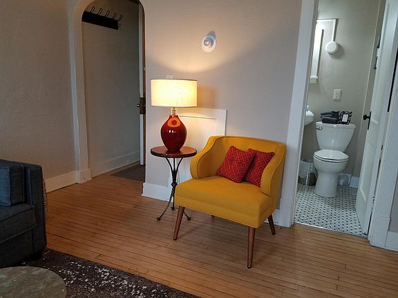 This apartment is approx. 433 sf (perfect for just one or two people) with tall ceilings and wide painted trim and doors, exposed ductwork, original maple floors, kitchen and renovated bath. This apartment is on the second floor. It's in super-walkable downtown Middleton....an amazing neighborhood of restaurants and lots of amazing retail stores. Long term tenants in this building with only 3 apartments. Parking is easy either on the street or in the city lot one block down Elmwood. Bus and the free trolley stops are nearby. Everything you need right at your doorstep. Also available furnished for additional fee. Tenant responsible for gas and electric.