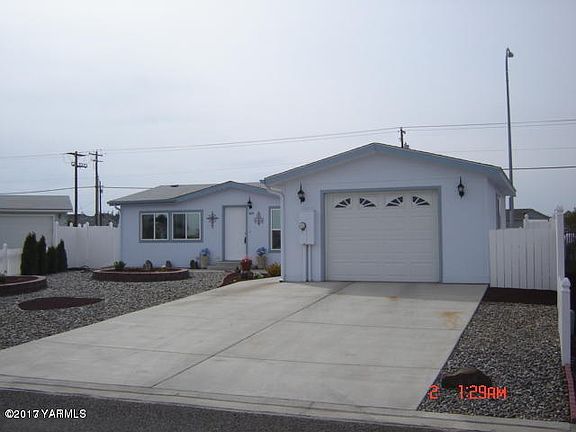Move-In Ready 55+ Westside manufactured home located in Yakima's premier Valley Estates. Featuring vaulted ceilings and a open concept floor plan. 3-bedrooms, 2-Baths, 3rd bedroom is small and is used as a office/den. Low maintenance landscaping is complete with covered back private patio. Other features include: club house, pool, tennis court, RV parking, city bus line, all conveniently located to all goods and services.