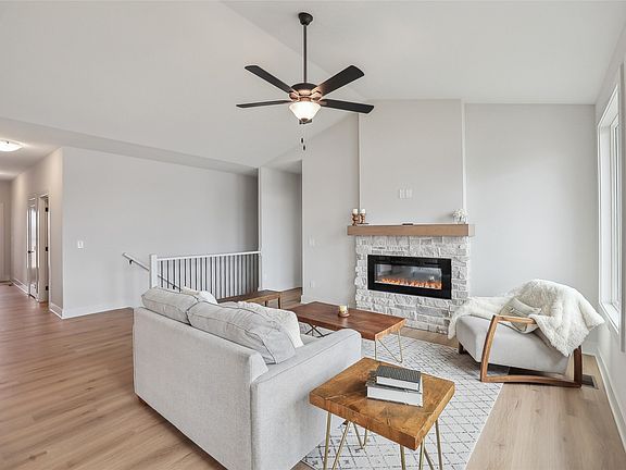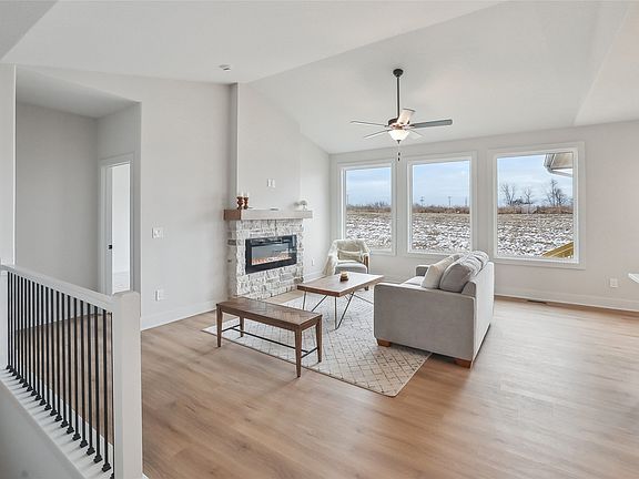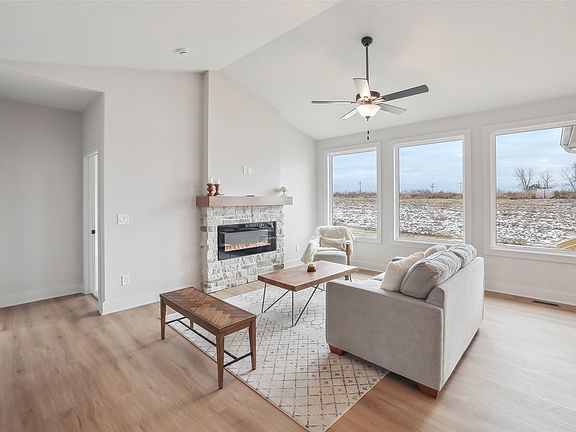 Welcome to the KRM Custom Homes 3-bedroom Amber plan nestled in the charming Blooming Heights South neighborhood. Explore this exquisite home boasting 3 bedrooms on the main floor, with a great room adorned with a hickory mantle on the electric fireplace and large fixed windows for ample natural light. Enjoy 9' ceilings and rounded drywall corners throughout the main floor. The kitchen showcases gorgeous quartz countertops, a spacious walk-in pantry, and an expansive kitchen is equipped with a stove, microwave, and dishwasher. The primary suite offers a private bath with a tiled shower and a sleek frameless glass door. Additionally, the primary closet conveniently connects to the laundry room. The drop zone provides a perfect spot to organize essentials for a quick exit. Exclusive builder features include the BIBS system, city water meter, passive radon mitigation, Form-a-Drain, Advantek subflooring, and the Zip system on the exterior. The HOA is established but currently there are no dues, this could change without notice.