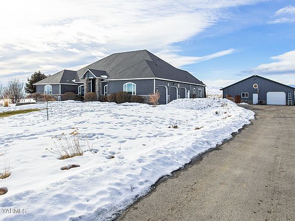 Located in the beautiful West Valley of Yakima sits this modern day ranch home and shop that encompasses unobstructed Ahtanum Canyon views with a peek of Mt Adams along side breathtaking natural surroundings. This elegant home features 3,577 square feet on 14.98 incredible acres, 3 bedrooms with en suite baths, a great room, an office, an ample sized rec room and a gourmet kitchen. The generous sized bonus room lends itself to a 4th bedroom, storage, playroom, or hobby room. It offers a spacious 3 car garage along with a shop that includes an ADU inside for an additional living space for a separate residence, workout room and all of your toys! The covered deck, patio and hot tub await many opportunities to view the beautiful wildlife of elk, Great Horned Owls, Ringed-neck Pheasants, quail and hummingbirds to name a few. The land is wide-open space that backs up to cattle country. This is also an assumable VA Loan at 2.25%. This private home is must see.