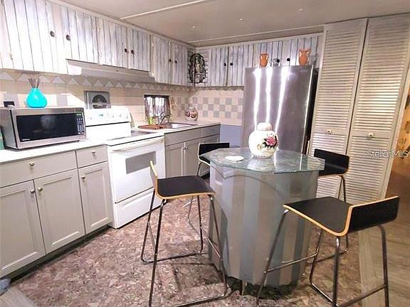 Rare opportunity - Own your mobile own the land with NO HOA. Unique property with extra storage and enclosed porches, ready for you to make it your own! Enjoy full freedom, and very low utilities, low taxes, no age restrictions, No land lease. Enjoy privacy with your fully fenced yard with large double carport and extra storage features including a "she-shed" and small tiki bar on the back side of the carport with built in storage. Not in a Flood zone! Make the double carport with extra storage your outdoor grilling area! Make this your own, there are many possibilities! Extra rooms can be an office or gym, or extra bedrooms. Newer plumbing, Newer mini split A/C, metal roof has been coated. Very convenient to schools, shopping, dining, hospitals, and the historic Tarpon Springs Sponge Docks. Plus, enjoy an easy commute to both Pinellas and Tampa Airport