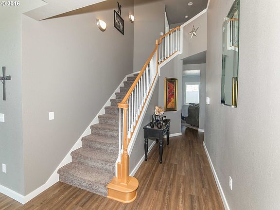 Built in 2015, beautiful finishes throughout. Vinyl plank floors through living, kitchen and dining. Kitchen and family room are an open great room with a gas fireplace. Stainless kitchen appliances & Corian type counter tops. Slider onto patio with gas hkup. Down stairs with an office/den and formal dining area. Master suite with walk in closet, bath with shower, dbl sinks and tub. Large RV parking w/hookups, shed. UGS front and back.