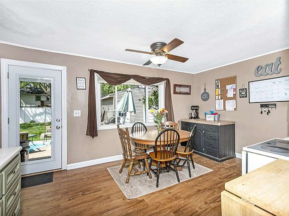 Nothing to do here, but move in and unpack. Three ample bedrooms, a full bath, and an oversized one car detached garage make this home with James Hardie Fiber Cement Siding the complete package. Picture windows in both the living room and kitchen with a pass-through window in between fills your main level with tons of natural light. Eat-in kitchen includes all appliances, an island, and a walk-out to the fenced backyard where you can enjoy barbequing on the patio or sitting around the fire pit on the included benches. All three bedrooms and the full bath with hall side linen closet can be found upstairs. Basement has been finished with an expansive family room which was retiled in the winter of 2018. New wood laminate flooring in 2019. New Richmond water heater in 2018. All this and Green Acres Park, Wood Junior High, shopping and dining within a half a mile.