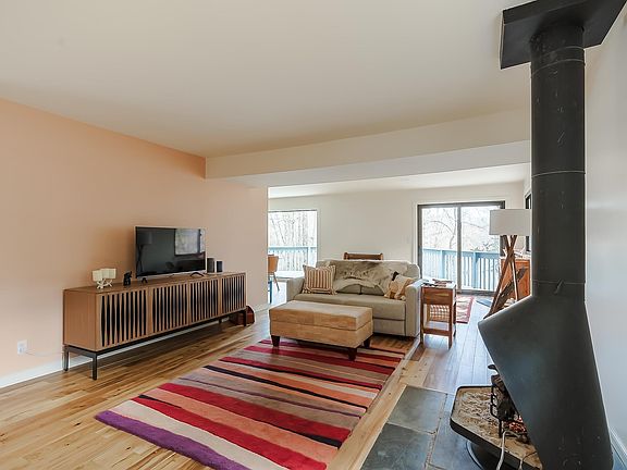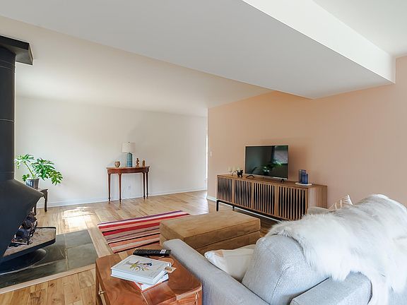 Experience the amazing ambiance of this newly updated mid-century modern home, offering a unique opportunity to own a custom residence in the highly desirable Greenbrier neighborhood. Located just minutes from Downtown and 29, this home boasts a fantastic location. The main level showcases a NEWLY RENOVATED kitchen with maple cabinets, quartz countertops, a spacious living room with a vintage gas fireplace, and a large dining area. Relax and take in the views from the wall-to-wall newly installed windows overlooking the expansive deck. Fully remodeled bathroom on main level with an easy-entry tiled shower stall. Upstairs, you'll find a large primary suite with exposed beams, a private and completely new bathroom, and spacious closet area. You will find gorgeous new Locust hardwood flooring throughout the main and upstairs living areas. The laundry room is conveniently located upstairs for added ease. The lower level features a fourth bedroom, a full bathroom, a large rec room, a mini kitchen, an office area, and a separate entrance. This space could easily be used as an apartment, offering plenty of storage on the lower level as well.