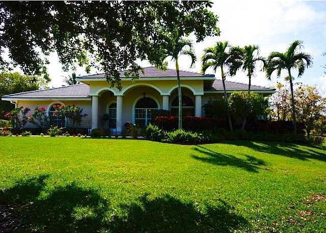 One of newest & least expensive homes for sale in River Ridge. CBS w Hardiplank exterior. Lots of privacy w large yard, covered porches, tropical views. .409 ac. Granite,luxury finishes. Manned gate. River breezes. Plumbed for tub in MBA. 1 floor. All sizes and dimensions are approximate. Built 2001. Large quiet private corner lot in private cul de sac. Standard FAR/BAR AS IS contract only. High ceilings in all living areas. Big screened back porch. No steps except front porch. Huge walk-in Master shower w fireplace in MBA w dual glass vessel sinks. Split bedrooms. High quality finishes w granite throughout.