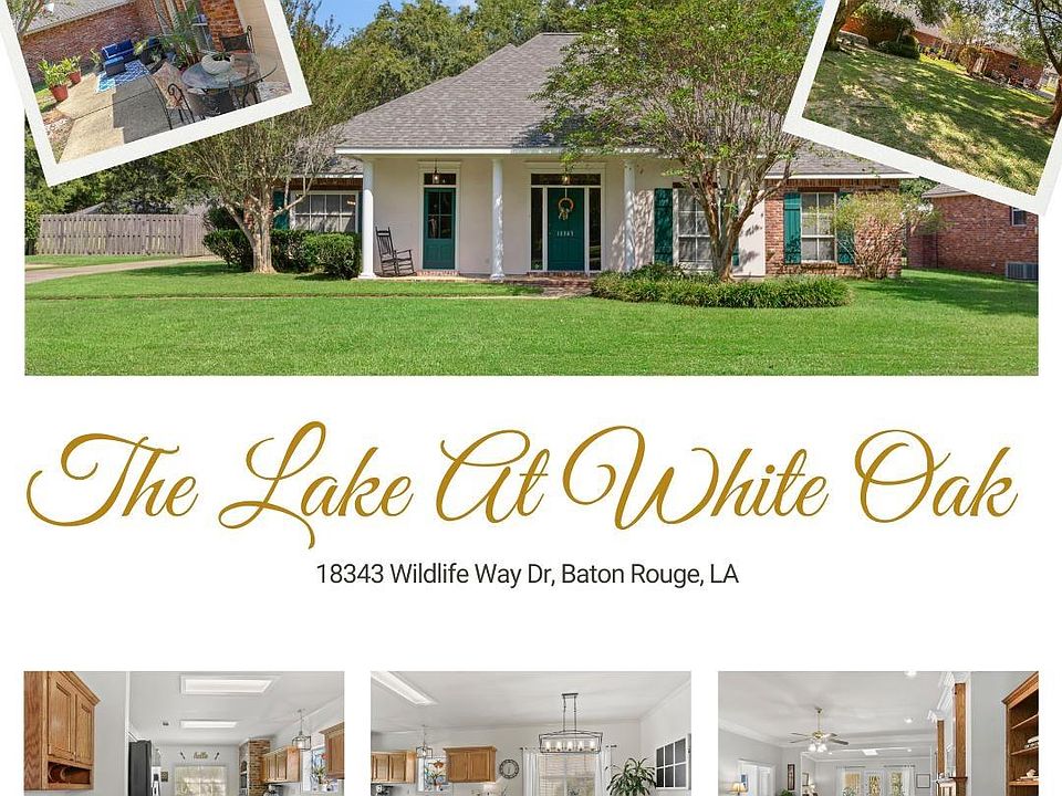 Southern charm meets modern convenience in this 4-bedroom, 2.5-bath home located in the desirable Lake at White Oak community. Offering 2,632 square feet of living space, this well-maintained property features crown molding, spacious sunlit rooms, and a thoughtful layout with excellent storage throughout. With a few personal updates, this home’s value and equity potential could be truly exceptional. The inviting den offers built-ins, a brick-hearth wood-burning fireplace, and a cozy nook perfect for reading or music. The kitchen includes a welcoming eat-in area, real wood cabinetry, and a brick surround framing the built-in oven. The oversized primary suite features a private bath with dual vanities, a separate shower, and a large jacuzzi tub. The park-like backyard provides ample space for entertaining or quiet relaxation. Roof replaced August 2021. Residents enjoy scenic lakes for boating and fishing, walking paths, and a friendly community atmosphere. Located just off George O’Neal Road near I-12 and O’Neal Lane, this home offers quick access to Woman’s Hospital, Ochsner, shopping, and dining—only minutes from CC’s Coffee House, and Starbucks. Enjoy the best of both worlds: a peaceful, tree-lined neighborhood with a relaxed country feel, yet close to everything Baton Rouge has to offer. With a few personal updates, this home’s value and equity potential could be truly exceptional.