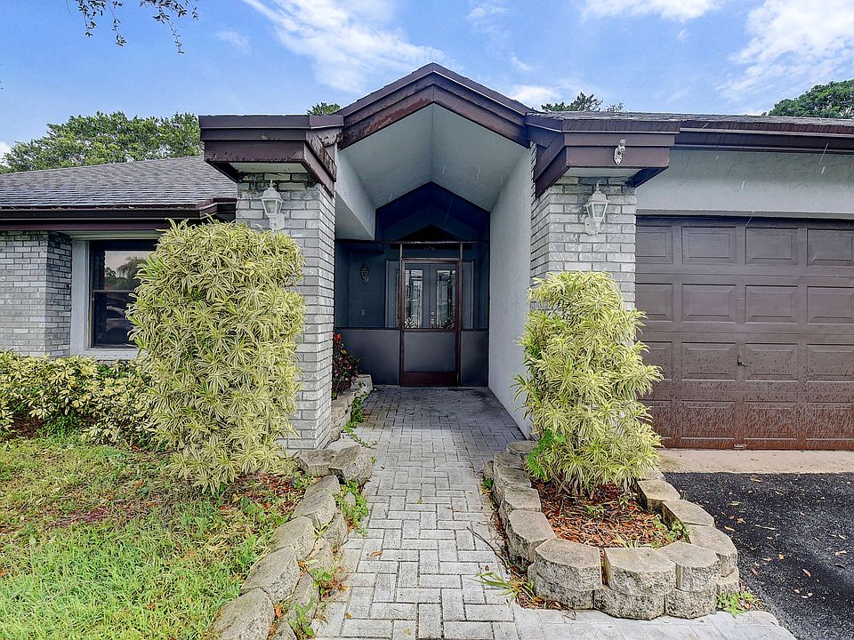 Welcome Home to this desirable Boca Chase neighborhood! Updated 4/2 Pool Home with beautiful detail and finishes. Double door entry, gorgeous tile floors. Kitchen equipped with Stainless Steel appliances and fantastic backsplash. Separate Dining, additional bar seating allowing easy conversation to the open living room space with soaring ceilings. Flex Room, Primary Bedroom Suite offers dual sinks and shower. Screened Pool with paver patio is what Florida Dreams are made of!!! 2018 Roof, Low HOA and great location.