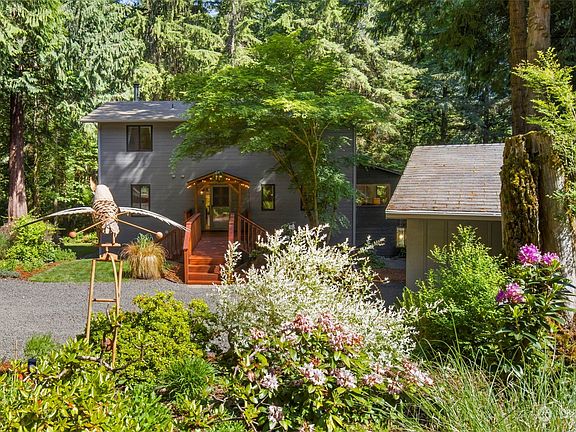 Updated 3-bedroom home with a peaceful park-like setting on 2.41-acres in Poulsbo! This 2158 sqft property has been restored with the finest attention to detail including new flooring, windows, solid-core wood doors & more. There are two walls of windows in the living room, refinished cabinets & counters in the kitchen, a cast iron sink and new black SS appliances. The wood-planked sunroom provides plenty of natural light & access to the serene surroundings and creek. It also offers remodeled bathrooms, convenient office space, fiber optic internet, an infrared sauna, and full basement. Outside you'll find beautiful landscaping, perennial gardens, patio, 2-car garage & outbuilding. The proximity to Seattle Ferries makes commuting a breeze!
