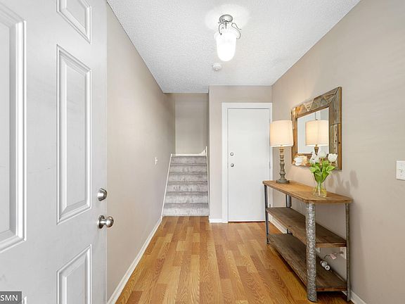 Your new home awaits in Lakeville! Superbly located, this Lakeville townhome features easy accessibility to nearby District 194 schools, parks, and the rest of the Twin Cities via I35! Enjoy a well-run association in a fantastic neighborhood, complete with walking trails, parks, and baseball/soccer fields. Inside, the interior features a gorgeous living room with a walkout balcony deck, new carpet, a stunning gas fireplace, and an adjacent bedroom! Upstairs, two additional bedrooms provide extra space and comfort, as well as a walk-thru full bath, separate tub and shower, and walk-in closet. Ample closet space throughout and an oversized two car garage provide extensive storage, always a big plus for townhomes! Pride of ownership from top to bottom, see our 3D Matterport virtual tour for more!