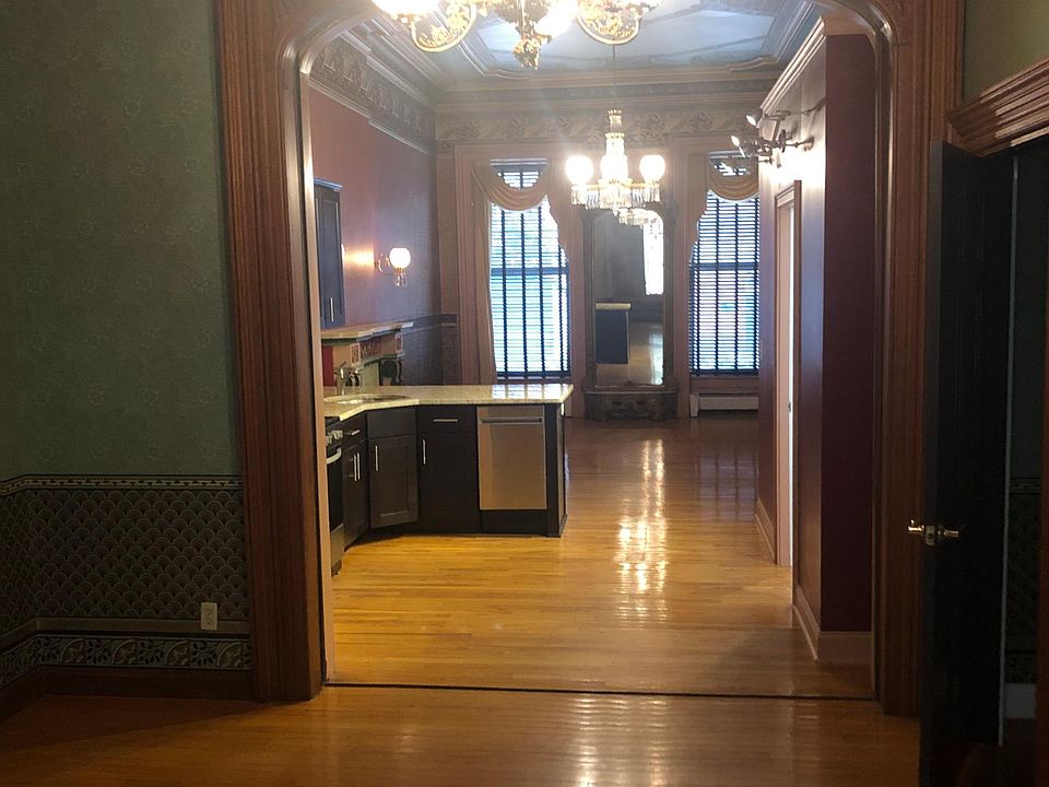 EXCITING NEWLY RENOVATED 1 BEDROOM , THE FULL MAIN FLOOR OF A CLASSIC UNTOUCHED HISTORIC DOWNTOWN TROY BROWNSTONE . ELEGANT SPACES WITH HIGH CEILINGS , PERIOD WALLPAPERS , PLASTER MOLDINGS , CHANDELIERS , STAINED GLASS , CARVED WOODWORK , HARDWOOD FLOORS , NEW KITCHEN WITH STAINLESS APPLIANCES AND GRANITE . SHARED REAR COURTYARD AND DECK FOR OUTDOOR ENJOYMENT.ON SITE LAUNDRY ROOM. NO SMOKING PROPERTY INSIDE OT OUT . CATS OK NO DOGS NO EXCEPTIONS. TENANT PAYS FOR GAS HOT WATER BASEBOARD HEAT , HOT WATER AND ELECTRICITY. CURRENT MONTHLY BUDGET FIGURE IS $ 120. NO SMOKING . NO DOGS . LEASE AND SECURITY DEPOSIT REQUIRED.