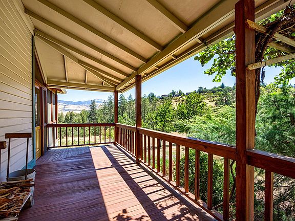 Unobstructed view of the valley & Grizzly Peak can be seen from this beautifully updated 4 bed + den, 2 bath 2500 sq ft, 1910 Arts & Crafts farmhouse. Nestled into a beautiful landscape bordered by seasonal creeks, enjoy the privacy of the country in this slice of paradise, close to downtown Ashland. The home is updated with high quality materials such as Brazilian cherry floors, double hung windows & Restoration Hardware lighting. A Vermont Castings wood stove adds coziness in winter while a new HVAC provides heating & cooling year round. The spacious eat-in kitchen opens onto a screened-in porch, overlooking a large meadow rimmed by mature fruit trees and a sunny fenced-in vegetable garden fed by an abundance of water with a strong well, a year-round spring, holding tanks and a computerized watering system. Across from the home is a charming 1 bed, 1 bath cottage, workshop and barn for storage. This is a must see home & property.