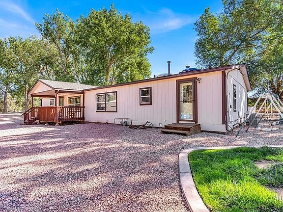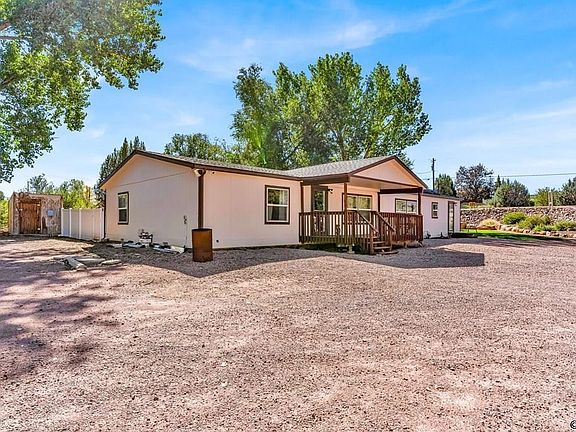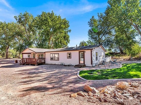 Welcome to your new home on 3.77 acres! This large 3 bedroom, 1 3/4 bath would make a great home for someone looking for a mini farm or wants room to roam, inside and out! This home has many upgrades and special features! On the outside you have a water feature, grass with irriagation, front and back porches, sitting areas, a shop, security cameras, multiple cross fenced pastures and 20 shares of Crooked ditch and a new roof! On the inside there are vaulted ceilings, a living room, family room, large kitchen with granite counter tops, split bedroom design, every bedroom has a walk in closet, large laundry room, office, pellet stove and so much more! Welcome to your new home! , Construction: Manufactured