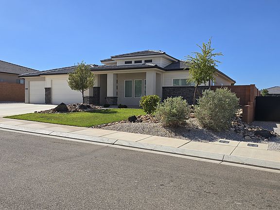 Built December 2020, close to St. George airport, 4 bedrooms, 2 full bathrooms. Pretty big Back Yard. Feel free to contact me for a viewing. Brand new fridge, microwave & dishwasher. New tile in the living room and new flooring in all the bedrooms. Brand new window shades. Car garage for 3 vehicles. RV parking on the side. Kitchen was just repainted. The back patio lawn will be replaced by homeowner.