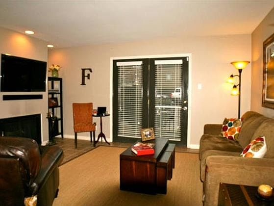 Beautiful former model unit! Corner unit with large fenced patio/grilling area. Smooth ceilings, granite on all countertops & Vanities. One owner since total remodel. Wood Burning F/P in spacious greatroom. Stainless appliances include frig.