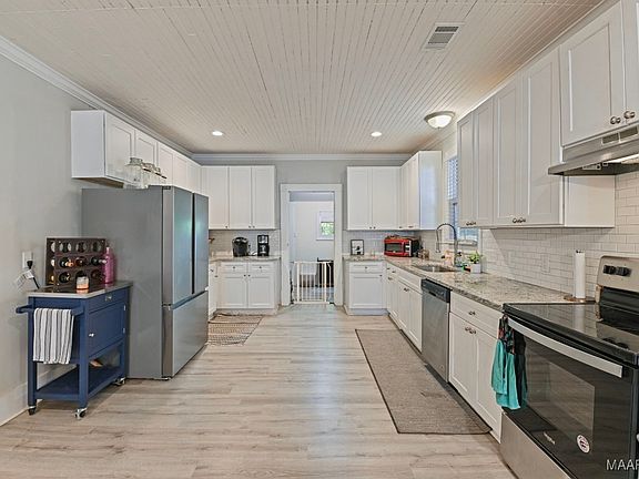Step back in time with all the comforts of today in this 1925 charmer located in Montgomery. Offering over 1,600 sq ft with 3 bedrooms and 2 baths, this home blends character and updates seamlessly. Inside you’ll find original details like tongue-and-groove ceilings, higher baseboards, and a built-in bookcase that add timeless warmth, while modern upgrades such as granite countertops, stainless steel appliances, updated light fixtures, and refreshed finishes bring everyday convenience. The open floor plan is perfect for entertaining with sight lines from the family room through the dining area and into the updated kitchen. The primary bedroom has an en-suite with dual vanities and a separate shower. The inviting front porch is perfect for rocking chairs and morning coffee, while the fenced backyard provides plenty of space for pets, play, or entertaining. Yes, being 100 years old means this home has its quirks, but that’s part of the story. With its affordability, charm, and function, it’s an ideal opportunity for first-time buyers or investors looking to add to their portfolio. This is your chance to own a piece of history at a price that makes sense in today’s market. Schedule your showing today!