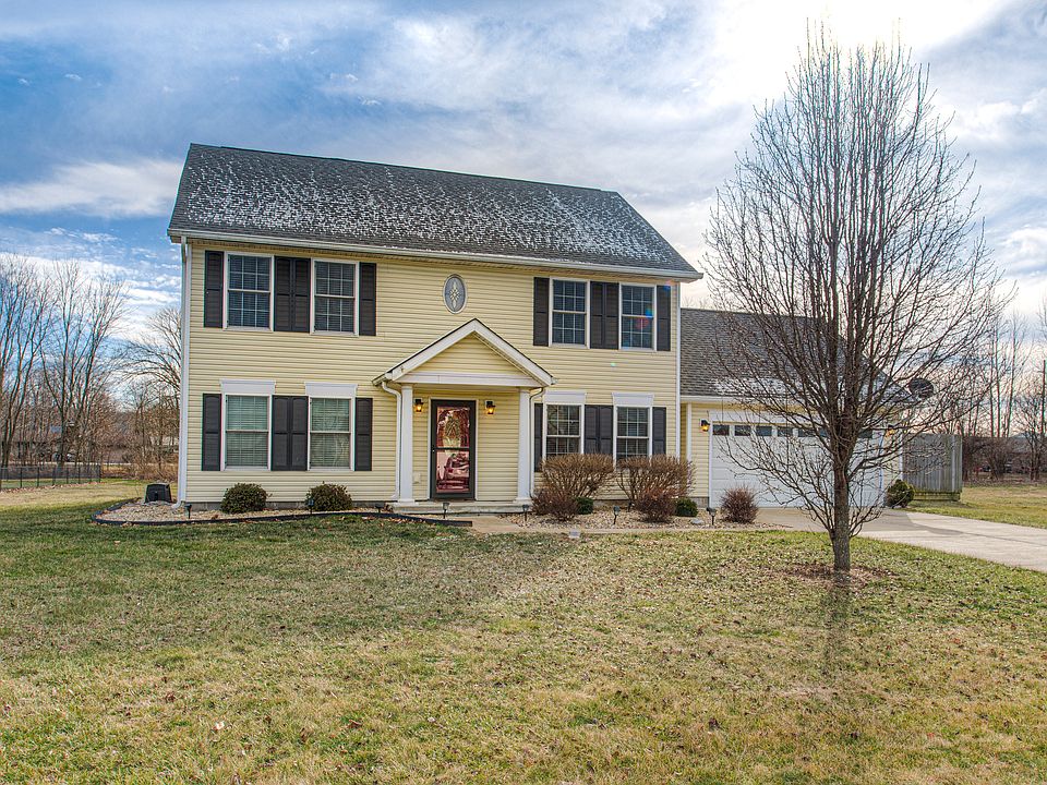 Located in a quiet, smaller neighborhood & surrounded by well cared for homes this property is well maintained & in immaculate condition. Situated on over a half-acre lot, with a 16'x10' mini-barn & a new 27'x18' custom deck this home provides the privacy which buyer's dream of having. Inside enjoy the ultra open floorplan on the main level featuring a combination of the Family Rm & Living Rm areas creating a 16'x29' gathering space. Formal Dining Rm & B-fast Rms offer multiple dining options. Kitchen sparkles with a full S/S appliance package, ample counters & cabinets plus B-fast Bar, The upper level showcases a huge Owners Suite and amazing bath area plus three additional large, spacious secondary bedrooms. Large 2 car garage, No Assoc