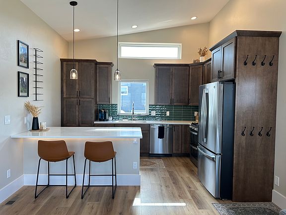 Brand new, fully furnished home perfectly situated below Mount Helena and close to downtown. Trails and the fully paved Le Grande Cannon path are just six blocks away. Park in the heated garage and store all of your gear. Fully fenced yard perfect for your furry friends. Upon entering, you will be flooded with natural light and panoramic views. The kitchen is fully equipped with a large refrigerator, double oven, and coffee/tea bar. Huge walk-in closet with washer and dryer. You will have everything you need for a comfortable stay. Owner pays for all utilities and wi-fi. Renter is responsible for lawn care and snow removal. No smoking allowed. Up to 3 pets allowed (no additional pet fees or pet rent). Options for a 1 to 12 month lease.