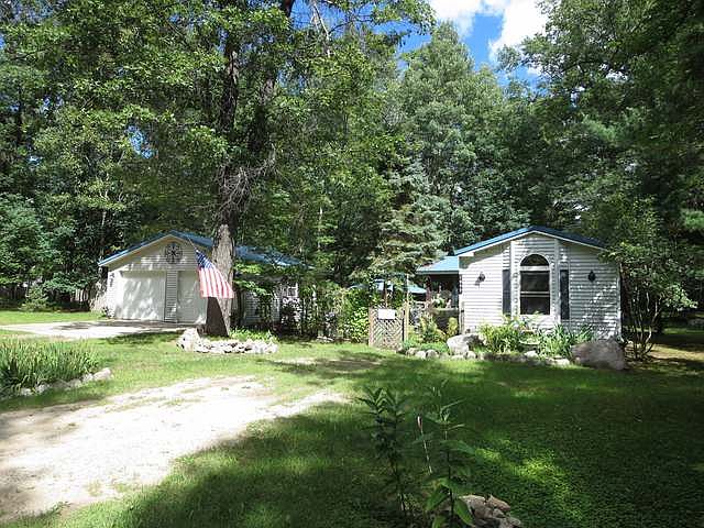 Private, tranquil,unique are just some of the ways this home can be described. The sellers flair for design and landscape takes the mobile feel out of this spacious 2 bedroom mobile home. The large mostly fenced yard is filled with perennial flowers, screened in gazebo filled with comfortable lounging furniture, sheds and a fire pit. The two car garage has a work bench and shelves. The sidewalk to the home keeps the dirt outside! Step into the comfortable screened porch that gives you some outside space protected from the rain or hot sun. Walk into the comfortable living room with vaulted ceilings, 2x6 construction, newer vinyl windows, steel roof, renovated bath, an amazing 12x12 master bath. All appliances included. The seller is also leaving the kitchen table with its bench window seat! You can feel the love and care the seller has had for this home. Located Close to Pratt Lake boat launch and public swimming beach,an easy drive to Gladwin, and yet a country feel...Cash, no LC