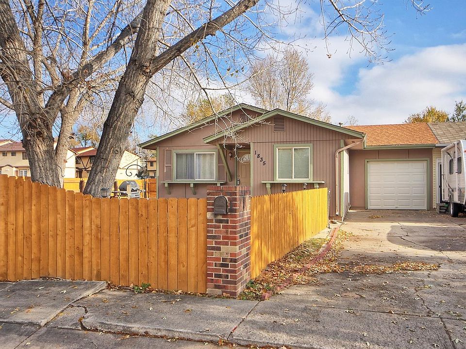 Charming ranch starter home with 1,242 square feet, three bedrooms, one full bathroom and a one-car garage, nestled on a sizable corner lot with RV parking and hookups including RV sewer. Your beautiful home features new privacy fencing in the front, side and rear yards and contains mature trees. As you enter, you are greeted with crisp walls and a sun soaked living room. The tranquil living room includes a large window encasing you in natural light. Your kitchen features all appliances, plenty of cabinet and counter space and a lovely breakfast nook. Through the laundry room you will find a walkout to your wonderful backyard with patio, ideal for barbeques. The backyard is perfect for entertaining large groups or intimate settings, you will cherish every memory made here. Your home is near parks, shopping, dining, schools, and just minutes from I-25, Academy Blvd and Hwy 24. This home will accommodate to every aspiration and promises you a dwelling to grow with and love.