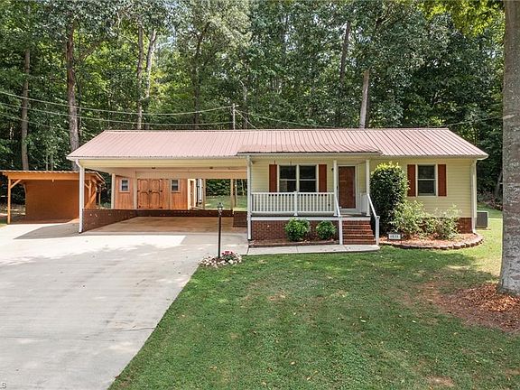 Welcome to your dream home nestled in the scenic landscapes of Lexington, North Carolina! Step inside to discover an inviting open floorplan that seamlessly connects the living room, dining area, and kitchen, perfect for family gatherings and entertaining. Home includes 2 well appointed bedrooms. Enjoy picturesque surroundings from your large yard, complete with a concrete patio, attached 2 car carport, covered rocking chair front porch, and spacious storage building. This lovely home is a hidden gem in Lexington, offering a perfect balance of comfort and style. Don't miss your chance to make it yours!