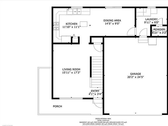 - Total interior livable area: 1,800 sqft