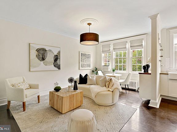 This delightful one-bedroom apartment with beautiful light is a welcoming oasis in upscale Kalorama Heights just steps from shopping, dining, and transit options of all kinds. At over 800 square feet, it is larger than many nearby two-bedroom units. The sunny west-facing living room opens to an updated kitchen with subway tile, stainless appliances, and stylish butcher block counters. The front dining room has built- in bookshelves and could also serve as office space for those who work at home. The adjacent bedroom has a built-in desk as well as two large closets. Even the bath is charming with a stylish penny-tile mosaic floor and spacious tub/shower. This unit includes two storage areas on the building’s lower level. Monthly fee includes gas, water, trash, taxes, and laundry. Located on a quiet, tree-lined street, the Woodrow is a boutique Beaux Arts styled pet-friendly building, featuring a bike storage area, a back garden patio with a grill and dining/seating options for residents to enjoy and entertain guests, as well as roof access to show-stopping city views and sunsets. Just around the corner from Mitchell Park and a quick 10-minute walk to Dupont Metro, Adams Morgan, or Woodley Park. The neighborhood is a pleasure to explore, with many embassies, museums and other attractions close by. Don't miss out on the opportunity to own this rare gem!