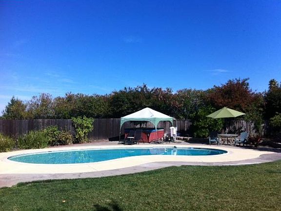 Entertainer's Delight! Wow! What a knock-out!With a stunning pool, covered patio for bbq'ing and a spa to enjoy under thosebeautiful starry nights, this home has it all. Walk through your double frontdoors and find a fantastic lay-out that awaits you. This home boasts a formalliving room and dining room, that lead you to a family room and kitchen combo.Beautiful hardwood floors in the formal living room and formal dining room,with a custom hardwood inlay in your front entry. Beautifully updated kitchen,with granite counter tops and stainless steel appliances. A gas range for allyou chef's. You will enjoy every moment spent in your kitchen, looking out yourgarden window to your pool, while guests can also keep you company whilesitting at your breakfast bar, and all the extra counter space with yourisland. Recessed lighting through your family room and kitchen. Custom tileflooring in the kitchen and family room. There is a 1/2 bathroom locateddownstairs for your guests. 4 Bedrooms, each with their own walk-in closet!Enjoy the sun streaming in your spacious master bedroom. You can look out uponyour custom landscaped backyard, with handy shed. French doors lead you to youroutdoor oasis. Enjoy the accessibility of your gated RV parking. Welcome toParadise in Hercules!