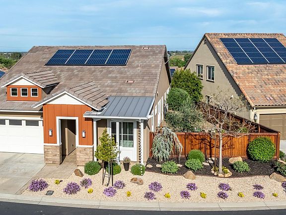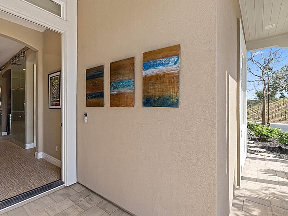 Welcome to 1835 Riesling Circle—this home is the epitome of the Trilogy lifestyle, blending timeless design, vineyard views, and phenomenal spaces to entertain both inside and out. This limited-release Malvasia model sits on an elevated lot with breathtaking views—see the snow-capped Sierras on clear days and enjoy a majestic oak tree and vineyard backdrop from the private side yard. Outdoor features include a covered patio, fire pit with granite-topped side tables, water feature, and built-in BBQ with seating for six. Over $130K in builder upgrades and owner enhancements like glass barn doors, a custom fireplace with 65” smart TV (included), and Hubbardton Forge lighting make this home truly exceptional. Energy-efficient with 12 prepaid solar panels (thru 2036), EV charger outlet, and insulated garage. Ideally located on a quiet street near the Wine Barn and clubhouse. This is more than a home—it’s resort-style living at its finest.