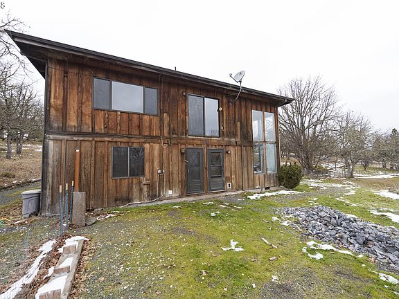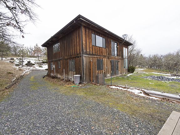 4.98 acres of rolling hills & trees w/potential of Mt. Adams/River view if take down house & build. Within CGNSA so check with Wasco County. Outbuildings include horse barn & garage/shop. Home is basically shell w/walls down to studs, fireplace rock removed, no kitchen appliances. Good start if you want to continue the remodel. Really nice land and just 15 minutes from Hood River.