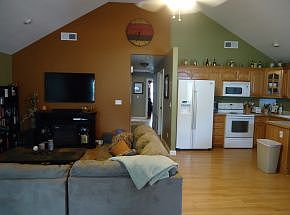1 car attached garage, 24x30 detached garage/workshop. Large fenced yard, garden area and 2 pear trees, 4 apple trees, peach tree with sprinkler system. Pretty private patio setting. Large vaulted ceilings open concept kitchen, dining and living room. New floors all electric home.