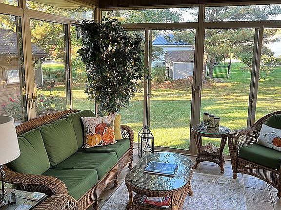 You’ll enter the home through a sundrenched foyer and find a living room bathed in natural light to your left, and a spacious formal dining room to your right. As you move beyond the foyer, you’ll enter the kitchen area and open family room. To the right is a newly renovated kitchen with built-in appliances, a gas cooktop and a window overlooking the backyard so you can keep an eye on your kids, pets, or the playful birds outside. Off the kitchen is a half-bath and pantry. To your left, you’ll find a family room with a brick gas-log fireplace and more natural light. Beyond the eat-in kitchen area is a sliding door that opens to a beautiful three-season room with custom stonework that is enclosed on all sides with Thermopane sliding glass doors so you can enjoy the peaceful backyard all year round. Upstairs, you’ll find a master bedroom with double doors that open into a full bathroom drenched in natural light, thanks to a skylight that illuminates the sit-down vanity area. To the right is a spacious walk-in closet. This home has plenty of storage for all the keepsakes and memories you create here, including a half-finished basement with both the finished and unfinished halves featuring abundant shelving, and outside a 144-square-foot custom-built shed. Major improvements include a new high-efficiency air conditioner in 2022, new gas water heater and high-efficiency gas furnace in 2021. Request a tour today so you can see this beautiful home in person.