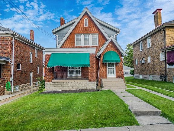 Absolutely beautiful home with tons of character & charm! Must see this well maintained home that has even more potential. Lots of curb appeal and located on a very quiet & desirable street in Brighton Heights. Level yard and rear 2 car garage with additional storage above it. French doors from the living room lead to a gorgeous front porch. The tiled porch is a great place to spend time and features retractable awnings. The interior boasts a ton of original woodwork, built in cabinetry, stained glass windows, original fireplace, mantel, and much more! The original hardwoods are begging to be restored once the carpet is removed. The hardwoods are throughout the 1st and 2nd level under the carpeting. The kitchen is open to the dining room with a convenient breakfast counter and cabinetry above.
