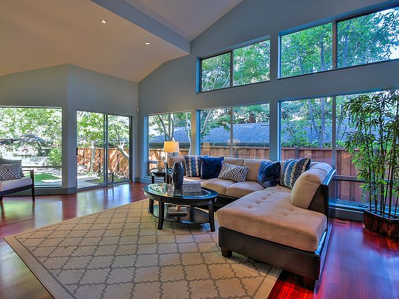 Stunningly beautiful contemporary "green" home designed by award winning architect Robert Peterson & built in 2002. Set in lovely Glen Ridge neighborhood, this 4 bed/3 bath, 2,338 sf home is amazingly PRIVATE built with beauty & best quality in mind. Open floor plan, high vaulted ceilings, walls of windows & 4 power skylights bring an abundance of natural light & fabulous view of the professionally landscaped serene yard. Kitchen intuitively designed with gorgeous SS counter & sub-zero freezer. Cherry hardwood flooring throughout adds warmth & depth. Bedrooms are large, master suite has convenient & separate office space with private entrance to upstairs deck. Radiant floor heating in bathrooms. Owned Solar, alarm, Tesla Charger. Wholehouse fan keeps energy use down & temps ideal. Graceful flow between inside & out includes Blomberg slider doors that lead to slate tiled patio & walkways, IPE benches, decking, spa & Mugnaini wood fired pizza oven. Excellent LG schools, near downtown.
