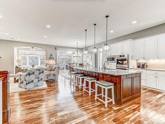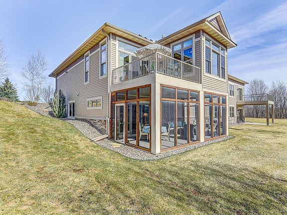 Magnificent walk out Rambler style Villa at Bellante with a 3-car garage near Bracketts Crossing Golf Course with views overlooking a pond/wetland. Open, spacious architectural design with 10 ceilings and floor-to-ceiling windows. Acacia hardwood floors & abundance of dark/rich Walnut and dove white enameled cabinetry. Spacious main level owner's suite with a gorgeous selection of natural stone, granite & tile. Huge walk-in closet walks thru to a main floor Laundry room with custom cabinetry w/ beautiful granite counter tops. Study with French glass doors. The Lower level Family rm. features a built-in media center flanked by a stone-faced corner fireplace. Game area with full wet bar plus 2 guest rooms & full guest bath completes the lower level. Unique covered screened in patio below the sun room and deck above. Large 3-stall garage is heated and insulated with epoxy floors. Meticulously maintained. Upscale serene setting in West Lakeville within 30 mins of Mpls/St. Paul.