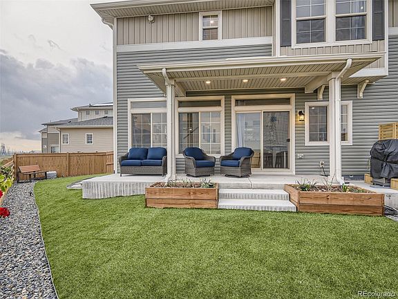 Welcome to 18359 E 102nd Pl, a meticulously maintained 2-bedroom, 3-bathroom home located in the desirable Reunion neighborhood of Commerce City. As you step inside, you'll be greeted by an inviting and bright living room with large windows that flood the space with natural light. The open concept design flows seamlessly into the dining area and kitchen, creating a perfect space for entertaining or family gatherings. The kitchen features stainless steel appliances, ample storage space, beautiful quartz countertops, and a large center island with seating perfect for meal prep or casual dining. The main level also includes a convenient half bathroom. Upstairs, you'll find the primary suite, complete with a private en-suite bathroom and a walk-in closet. Additionally, there is a 2nd, generously sized bedroom, another full bathroom, and spacious laundry room. Enjoy Colorado's beautiful weather from the comfort of your own backyard, featuring a spacious deck, artificial turf, covered patio. The home also includes an attached 2 car garage for your convenience! The Reunion neighborhood boasts fantastic amenities, including a community pool, parks, trails, and a fitness center. Conveniently located near E-470 and I-76, this home provides easy access to Denver, Boulder, and Denver International Airport. Don't miss out on the opportunity to make this beautiful house your new home!