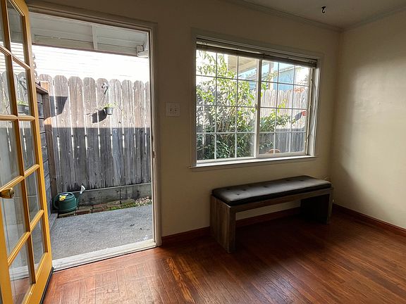 Mid-Century garden apartment: --1 of only 4 one-story units --No other apartment above or below --625 sq. feet --Private outdoor patio with garden --Bright and charming west and east facing exposure --Large living room --Eat-in kitchen --Hardwood floors --Granite countertops and floor tiles --Walk-in closet in bedroom --Hall closet --No carpet --Original mid-century bathroom tile --Secured off-street carport included -- Storage room --On-site laundry --Landscaped common area with fruit trees Good transit Very walkable and very bikeable 5 minutes to downtown Oakland by car Thank you! Elizabeth Owner pays for garbage. Tenant pays PG&E and water.