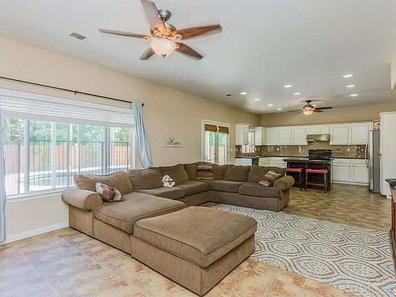 Beautiful Home on large corner lot nestled away in a Kingsburg cul-da-sac with a beautiful sparkling pool for your summer get togethers! Home has large bedrooms plus an office and 3 full bathrooms. If space is what you need! This is the Home for you!!! Master bathroom features a separate shower and tub and Huge walk in closet. Kitchen features beautiful Granite counters. Subway tile backsplash, stainless steel range hood. Two separate living areas. Enjoy the ambiance of this beautiful back yard with a covered patio and pebble tec pool. Pool is completely fenced for safety. Large 3 car attached garage, one being drive through. This home includes a whole house fan along with many other upgrades! This is a must See!! Sellers are Motivated! Call for your appointment today!