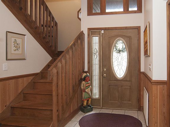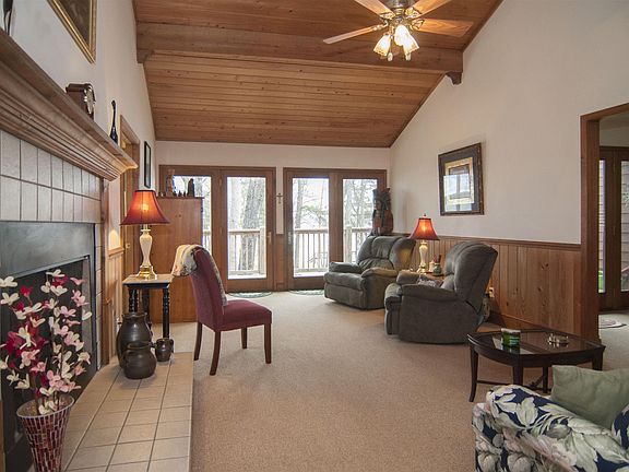 Unique Peninsula Property! Over 700 feet of waterfront and 1.24 acres with a custom built home with lake views from every window. The home includes lots of wood work, Lincoln doors and windows, 3 bedrooms, 2 1/2 baths, sun room, 1320 sq ft finished walk-out basement with heat & air, plus lots of storage. Master on main opens to the sun room on the lake side; family room,dining room and kitchen all have awesome views of the lake. The third level includes 2 bedrooms, sitting loft and bathroom, together with a 288 sf storage room! The basement has been used as a shop, man cave, playroom , exercise room, as it includes 5 rooms and a sink for cleaning fish! New deck on the front and large deck on the lakeside. Patio with grilling area. Down by the lake is a dock, picnic shelter with covered sitting area and storage for water toys. Great home for entertaining! Views for miles up and down the lake. Welcome to Paradise!