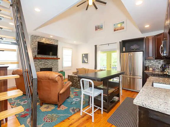 Modern 2-Bedroom Carriage House & Loft in Candler Park/Lake Claire This beautiful and modern 2nd and 3rd-floor carriage house and loft offer a stylish, comfortable space in the highly sought-after Candler Park/Lake Claire area. Perfect for business travelers or vacationers needing convenient access to Atlanta's hotspots, this home is within walking distance to local dining, shopping, and services, and just a short drive from key Atlanta attractions. Features include: 2 spacious bedrooms with comfortable king-sized beds 1 large bathroom with dual sinks, a stand-up shower, and a bath Fully stocked kitchen with stainless steel appliances, large fridge, Keurig coffee maker, cookware, and dishes High ceilings in the living area with a cozy fireplace Washer/dryer conveniently located in the master closet Brita water filter provided for fresh, filtered water YouTubeTV and high-speed Wi-Fi for your entertainment needs Balcony deck with seating for relaxation One designated off-street parking space, with additional street parking available Pet-friendly with a flat one-time fee (please notify prior to arrival) The second bedroom is an open loft space overlooking the living area, accessible via custom ergonomic steep steps (please note, this is not handicap accessible). For long-term stays, essential items such as coffee, cooking oil, sugar, and toilet paper are provided upon arrival but are not replenished once they run out. This bright and spacious home is perfect for longer stays, offering modern amenities and a prime location in one of Atlanta's most vibrant neighborhoods.