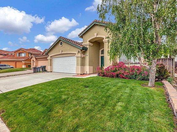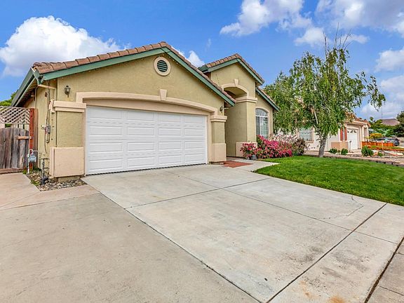 Welcome to this charming home in the desirable Creekbridge neighborhood that's perfectly designed for comfort and convenience! An inviting floor plan with plenty of natural light glistening in through the windows, accenting the hardwood floors. The kitchen is a Chef's delight with recessed lighting and features an island with sink, electrical outlet and eating bar. Not one, but three pantry cabinets for an abundance of storage! Open floor plan combines the family room, dining area and kitchen, designed for family gatherings and entertaining guests. Ample sized bedrooms, one with a built in desk, perfect for a home office. Double vanity sink in primary bath with glass door enclosed shower. Hallway has cabinetry for storage plus an indoor laundry room. A/C to cool down on the warm weather days and Solar Power to handle the expense. Well maintained front yard, plenty of mature trees, and a back yard that has endless possibilities for your outdoor enjoyment! Located close to schools, parks, shopping and dining. Only 27 minutes to the Gilroy Premium Outlets.