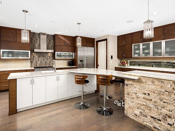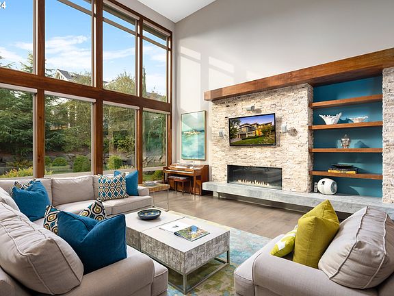Beautiful, inviting NW Contemporary custom built by BC Homes & featured in 2015 Street of Dreams! This home has been meticulously cared for and features walls of windows with an abundance of natural light bringing the outdoors in and 20 foot ceilings! The openfloor plan blends seamlessly to the dining area & modern kitchen w/ spacious island made for the gourmet cook! High-end stainless steel Miele appliances, coffee station, huge pantry and buffet offering added storage. The covered outdoor cooking & dining area is well equipped with built-in barbeque, sink, outside fire pit with extra seating and level yard for play. Inside you'll love the primary suite w/ spa-like bath & heated tile floors, 3 additional en suites, loft, home office, killer theater room, & a SAVANT home automation system! Highly rated Lake Oswego School District within walking distance, and a fabulous location to downtown LO, restaurants, shopping, and more. Welcome home!