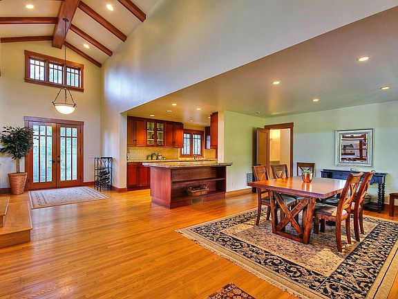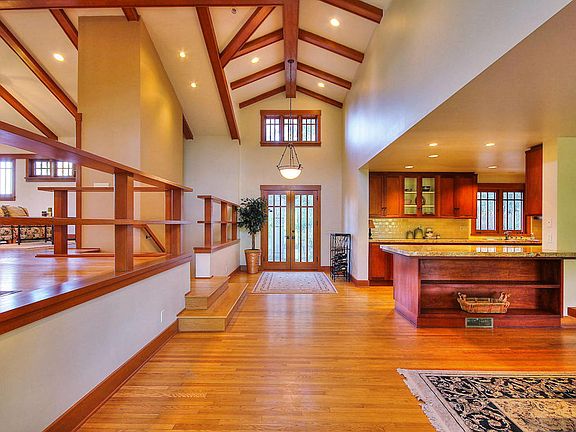 This Santa Barbara Riviera contemporary Craftsman home with big, gorgeous views of the SantaYnez mountain range sits high above the street on a large lot near the Sheffield Reservoir Walking Park and nature area. Extensive new construction was completed in 2003, designed by architect Leslie Becker of Studio G Design and built by D.D. Ford Construction. Recognizing this stunning home in 2004 D.D. Ford received the "Santa Barbara Contractor's Association Builder of the Year¢â?¬"Best Remodel" for the project for outstanding quality, designer detailing and one of a kind amenities. An award from Santa Barbara Beautiful for outstanding landscaping was won in 2005 for beautiful use of native California plants. This large four bedroom (or 3 with office), three bath home and two car garage has off-street parking for six. The extensive wisteria and rose covered veranda offers a sheltered haven to enjoy the picturesque setting. The custom entry door with the "Hollyhock" inset stained glass was designed by local artistic legend, Brian McNally. The interior features impressive vaulted ceilings, an open floor plan, custom fireplace with lighted built-ins, and French doors leading to numerous outdoor areas, perfect for entertaining or quiet enjoyment. The gourmet kitchen offers custom mahogany cabinetry, Brazilian granite counters, pantry, breakfast nook and stainless steel appliances. The adjacent family room features indirect lighting, mahogany bookcase and in-wall wiring for home theater. The master suite is located on the lower level and provides an oasis of relaxation with light controlling custom window treatments and French doors leading to a private patio overlooking the main garden. The master suite with fully-fitted walk-in closet opens to a spacious luxurious bath with temperature controlled tile floors, an over-sized overhead "rain forest" shower and double basin areas. A separate laundry room with wash tub and nearby study area complete the lower level suite.