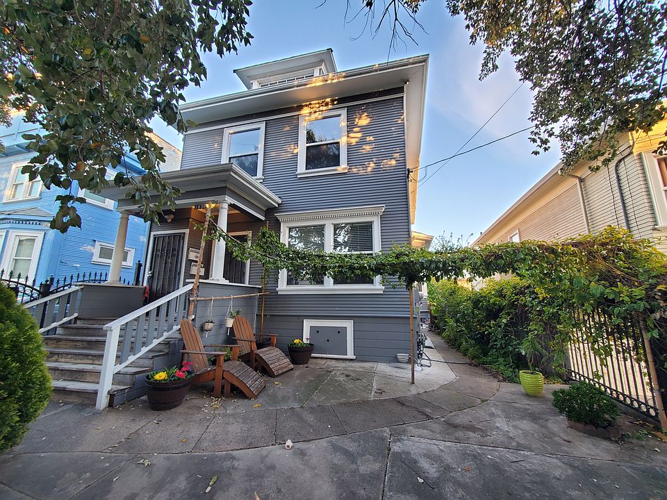 Medium-sized unfurnished bedroom in the lower unit of an Edwardian duplex full of old world charm, but boasting all updated amenities. Complete with full use of the large front yard, this duplex lives like a single-family home. The living/dining room and bedrooms boast cherry hardwood floors, while the remodeled kitchen features new tile floors, LG appliances, modern gray Ikea cabinets, quartz countertops, and a large farm style sink. The remodeled bathroom has a jetted spa soaker tub, stylish vanity, and tile floor. The unit also includes a full laundry room/storage area with washer, dryer, and extra storage cabinets. The interior is painted with a beautiful neutral palette of gray and white and features original craftsman style details and built-ins. Natural light fills the space - perfect for houseplant aficionados! The rental comes with near-exclusive use of the gated and secure large front yard with a large picnic table for outdoor dining and two Adirondack chairs. The front yard is spacious and has a large concrete area with some planters maintained by the landlord. Otherwise, this space for us to use exclusively for outdoor dining and relaxing under a beautiful oak tree. Gated off-street parking is available in the back of the house and is shared with the upstairs unit, as well as raised garden beds, and a chicken coop awaiting its next tenants! Super convenient commuter location close to 580 and 880 and 5 minutes away from the Fruitvale Bart and beautiful Lake Merritt. Easy access to neighboring cities and tons of amazing trails and parks. The Ideal Housemate - Mature and responsible working individual - Respect and Awareness of housemate and neighbors. - Punctual with rent and bills - Friendly, fun, chill, easy going, enjoys laughing, likes to hang and help out but also enjoys their independence Important to Note: - Looking for professionals with a steady income and financially responsible - For single occupant only, no couples - Looking for a team player in the house, willing to give a helping hand and willingly participate in communal chores - Common areas are furnished but room for rent is unfurnished - MUST LOVE (or like/tolerate) DOGS and be able to be responsible for keeping doors/gate closed, and keeping unsafe items/food out of their reach. - A mellow additional pup is welcome if it gets along with the current pack members - 420 friendly, but must smoke outside Current Residents: Jen - I am a bookkeeper, dog walker/pet sitter, and sidekick to a few elderly folk. I enjoying hanging with my pups, crafting, advocating for animal rights, cooking, comedy shows, friends, and a good hike. The Pups: Thor - is an 12 yr old, 90 lb lab/cane corso, Pixie is 10 lbs with slightly wild white hair, and Hank is a 9lb old man with bat ears. They are all sweet, and take food and their 20 hrs of sleep a day very seriously, and sometimes have their friends stay the night. About our landlords: Alexandra and Campbell are owner landlords who, until recently, lived in the upstairs unit for almost 8 years and deeply respect the privacy of their renters. They spent a year renovating the home before renting it out, upgrading the electrical and plumbing in the process. They are very responsive and accommodating and have been dream landlords. Transportation: If you have a car, there is one off-street parking spot and street parking. Easy access to freeway 880/580. Fruitvale Bart Station is 1 mile away and the bus station is around the corner. If interested, please send a private message answering the following questions: Name & pronouns: Occupation/work schedule: Typical weekend: SO or partner? How frequently would they stay over? Looking for long term or short-term housing? If short term, please provide dates. + Anything else you'd like to share! I'll reach out to you with a plan to meet if we think we'd be a good fit! Terms: month-to-month lease Rent: $1,325/month Deposit: $2,000 First month's rent due at time of signing, deposit and renter's insurance due at time of move in Landlord pays for internet, trash, Ring doorbell, and water for exterior landscaping. Utility bills will include water, electricity, and gas, and will be split 50/50 between the two tenants. Any pets must be fully up-to-date on vaccinations