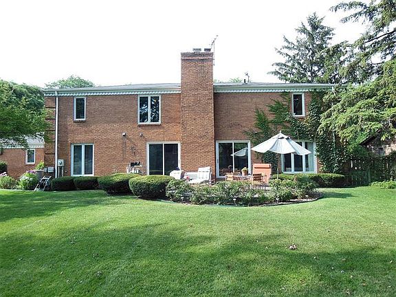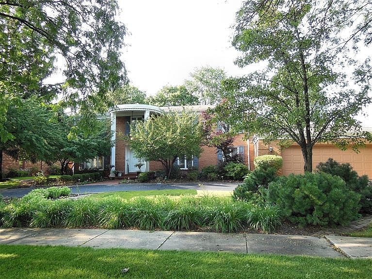 Outstanding landscaping surrounds this stately 5 bedroom all brick 2 story. The curb appeal is certain to captivate your interest. Step inside & experience a floor plan w/ a little flair. Main gathering room to the left is encircled by windows & filled w/ detail; love the large scale oak parquet hardwood. Formal dining features the same flooring. Spacious family room comes w/ double sliding door entries to a randomly curved patio area, custom tucked away wet bar & a slightly unique fireplace. Flow to the kitchen & check out the newer stainless double ovens/range & the corian counters. Light toned cabinetry has subtle grain to it & there's plenty of it, no shortage of storage here. 5th bedroom on main level a great spot for the office, bath is immediately adjacent. All 4 upper level bedrooms are quite spacious, 2 offer up built in desks & one comes with its own private bath & huge walk in closet. Master suite is well planned & certain to impress! A lovely home worth investigating.