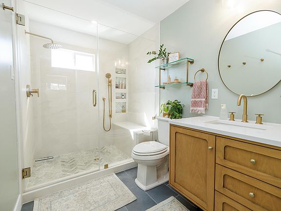 Welcome to this completely remodeled home where modern design meets timeless craftsmanship. From the moment you enter, you'll notice the attention to detail. Smooth texture walls and rich engineered hardwood flooring flow seamlessly throughout, creating a warm yet refined atmosphere. The craftsman-style baseboards add a touch of elegance, tying the entire home together with a custom finish. At the heart of the home is the beautifully redesigned kitchen. Bright quartz countertops sit atop stunning cabinetry, offering ample storage and a clean, contemporary look. Culinary enthusiasts will love the high-end Bosch appliances, including a gas stovetop, two full-size ovens, a drawer microwave, and a Zephyr hood making it a true chef's kitchen. Both bathrooms have been fully remodeled, each offering fresh, modern finishes designed for comfort and everyday luxury. Thoughtful design choices maximize space and create a spa-like feel, making them as functional as they are beautiful. Every upgrade has been thoughtfully selected to enhance not only the look, but also the livability of the home.