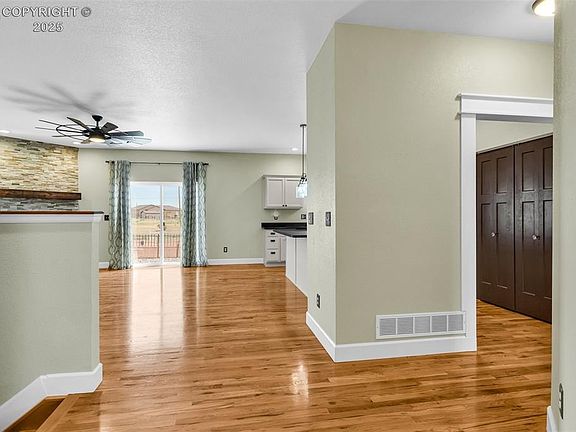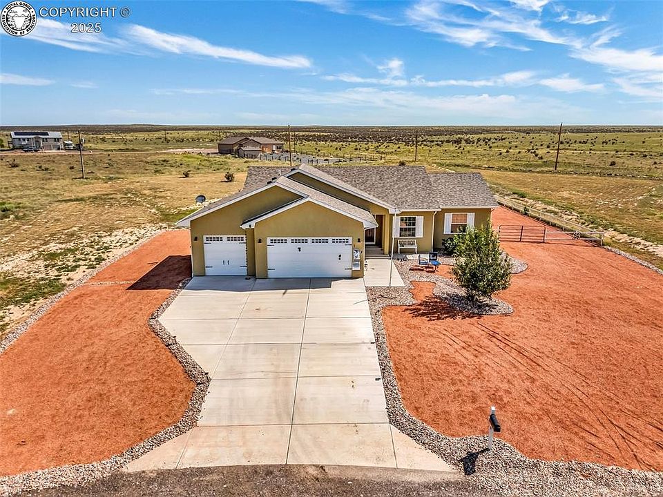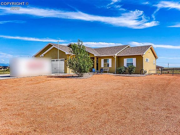 Welcome to this beautifully maintained 3-bedroom, 2-bath ranch-style home located in the sought-after Liberty Point area of Pueblo West. Built in 2020 and situated on a spacious 1.32-acre lot, this custom, site-built home offers 1,719 sq ft of main-level living space with an unfinished full basement ready for your personal touch. Enjoy the open-concept layout featuring 10-foot ceilings, rich hardwood floors, and a cozy gas log fireplace in the living room. The kitchen is a chef’s dream, featuring granite countertops, stainless appliances, a Custom stove hood, and a spacious dining room perfect for entertaining. The primary suite offers a walk-in closet and a luxurious 4-piece en-suite bath with a walk-in shower and elegant finishes. Two additional bedrooms also feature hardwood floors and generous closet space. Additional highlights include: 3-car attached garage (32x24) with 10' ceilings and room for storage or projects Tankless water heater, central A/C, and radon mitigation system Main-level laundry with utility sink RV parking and cul-de-sac location for added privacy Low-E double-pane vinyl windows, ceiling fans, and security system Basement is rough plumbed for bathroom Set in a quiet, established neighborhood with no HOA, Landscaping all around was completed in 2024 this home offers peace and space just minutes from schools, shopping, and highway access. Don't miss this rare opportunity to own a newer home on acreage in Pueblo West—schedule your private showing today!