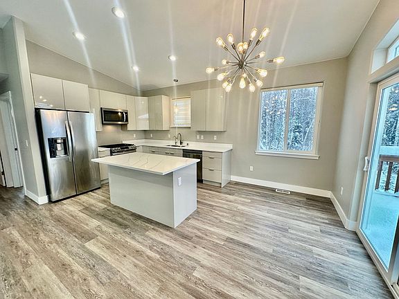 LAKE HOUSE! Beautiful 3 bedroom 3 bathroom 2 car garage home! NEW CONSTRUCTION HOME! LAKE VIEWS WITH LAKE ACCESS (just a little hike) Beautiful kitchen with QUARTZ countertops & stainless appliances! LVP flooring throughout entire home! Enjoy lake views from the huge balcony or relax by the backyard fire pit! Huge year for kids and pets to play! Close to Midnight Sun charter school & Three Bears Pittman. Pets on approval with $500. Additional security deposit and $50. per month in pet rent per pet. Limit 2 pets. Owner pays water, snow removal & yard care. Tenant pays gas, electric & trash. NONE SMOKING PROPERTY. NOT EXCEPTING ANY FORM OF HOUSING VOUCHERS. 1 year lease. Available now! PM for screening questions.